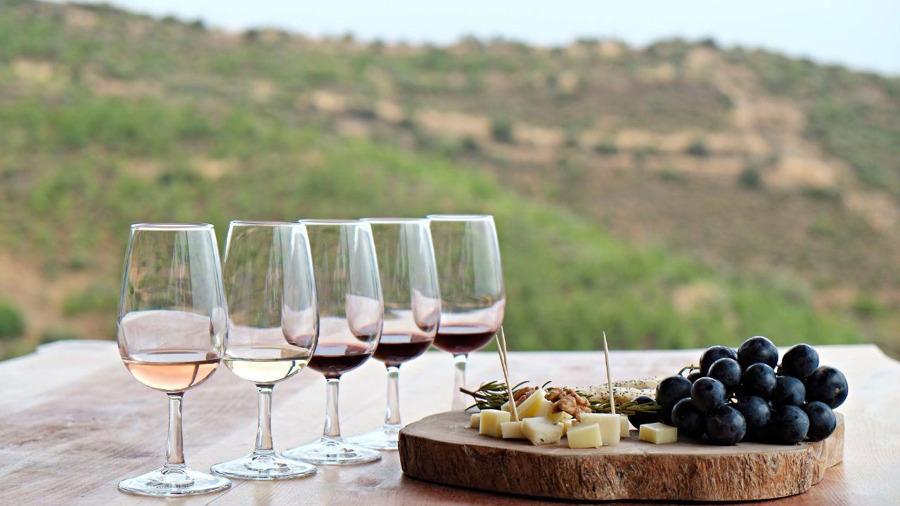 A set of artisanal cheeses or wines